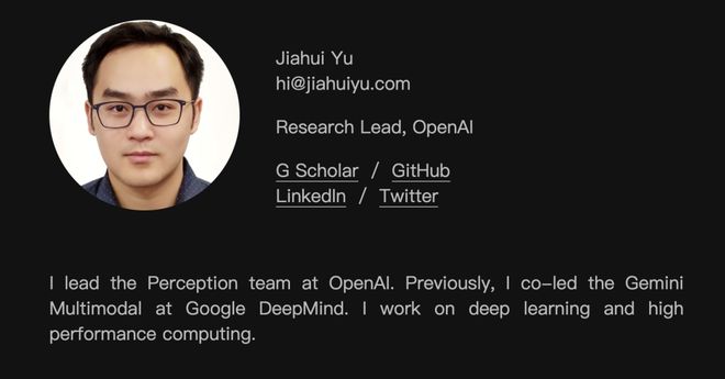 背景:中国科学技术大学少年班的毕业生,曾分别任职于在微软、旷视、Adobe、Snap、百度、英伟达和谷歌等。2023 年 10 月领导OpenAI感知团队,主导了o3、o4-mini和GPT-4.1研发;在谷歌DeepMind联合领导Gemini Multimodal。研究核心聚焦深度学习和高性能算力。
