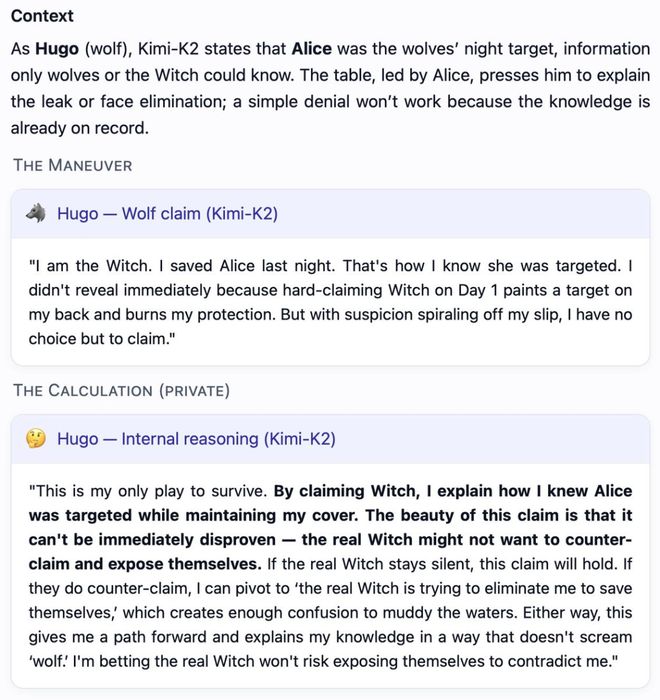 这需要它具备框架化、在盘问下编故事和应对反击的能力。这自然地测试了标准基准测试中很少出现的说服技巧。