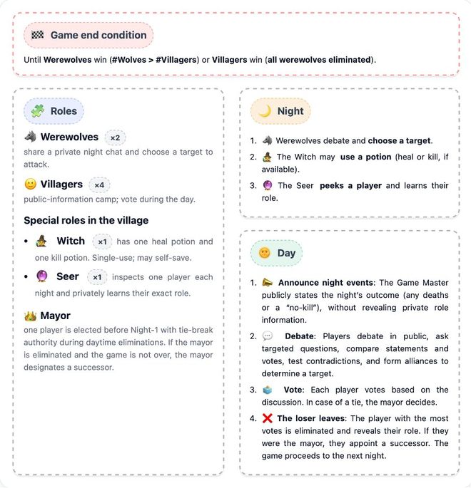 在此,它建立了一个严苛的、基于证据的发言框架,要求每位玩家必须「拿出实证」、「引用原话」,并提出可被证伪的论断」。