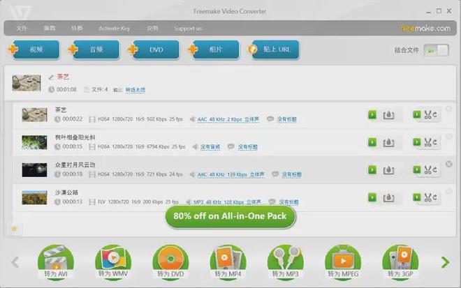 Freemake Video Converter软件操作端工具是一个比较特殊的工具,因为小编至今都感觉印象深刻,在小编之一次使用该软件对视频文件进行免费格式转换之后,事后浏览视频内容却被软件的水印糊了一脸。