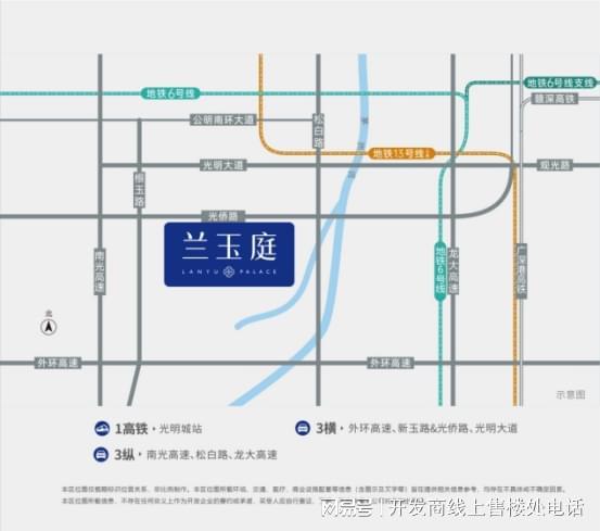 深圳光明星辉兰玉庭售楼处电线;开发商营销中心 *** :;项目位于光明区玉塘街道光侨路与规划通兴路交汇处西南侧,总占地面积11475.3m² ,建筑面积58000m²,规划共3栋332层,总房源558户(含73套人才房),共有车位752个地下3层停场,主力户型85-113平(3-4房)精装交付,梯户比3梯6户,开盘时间2024年11月,交房时间2025年9月30日,均价3.2万,物业费3.2元每平,小区就读学校为玉律学校,长圳学校,勤诚达学校,项目自带9班幼儿园。