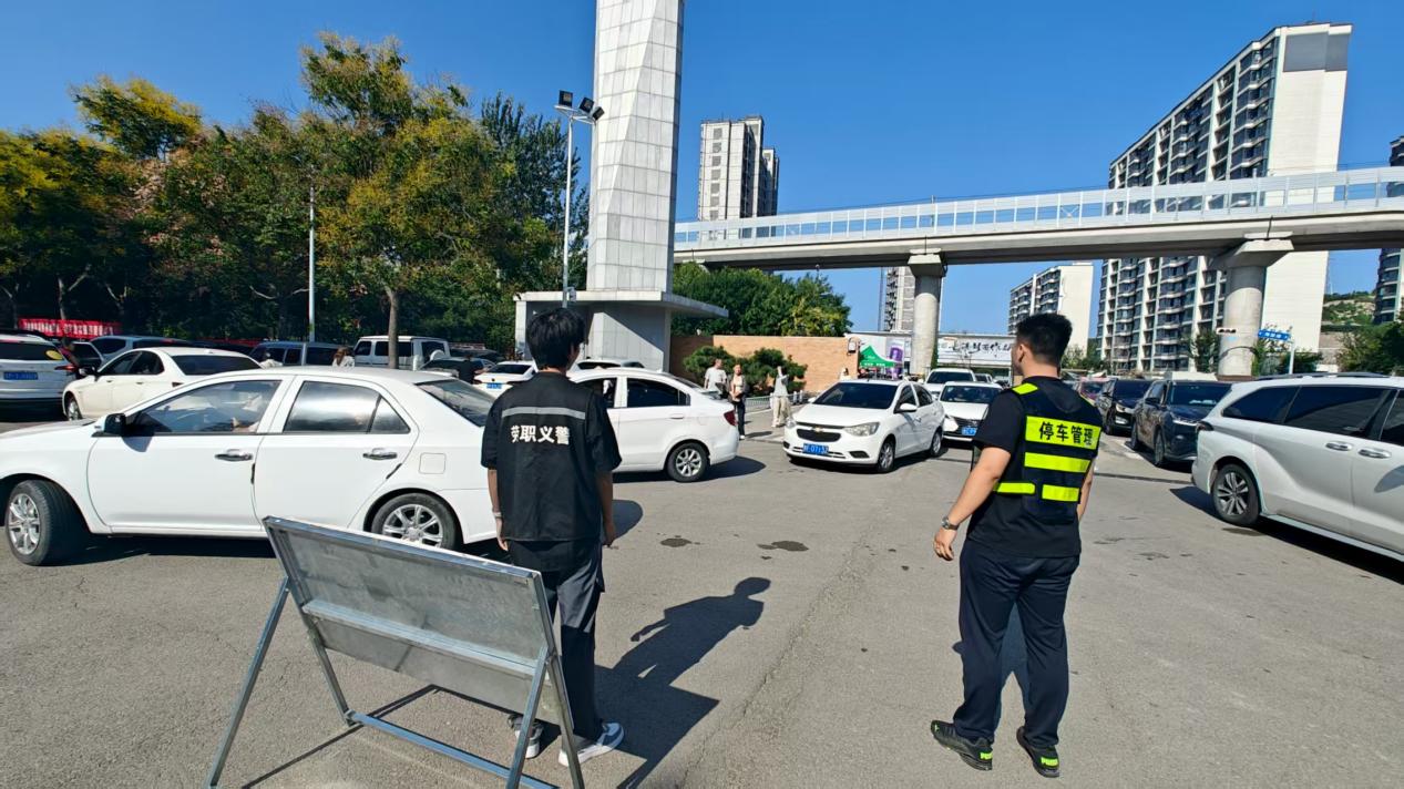 针对自驾到校的新生,学院优化车辆行驶路线,安保人员与“劳职义警”在校园主干道、停车场实时疏导交通,确保车辆进出有序。