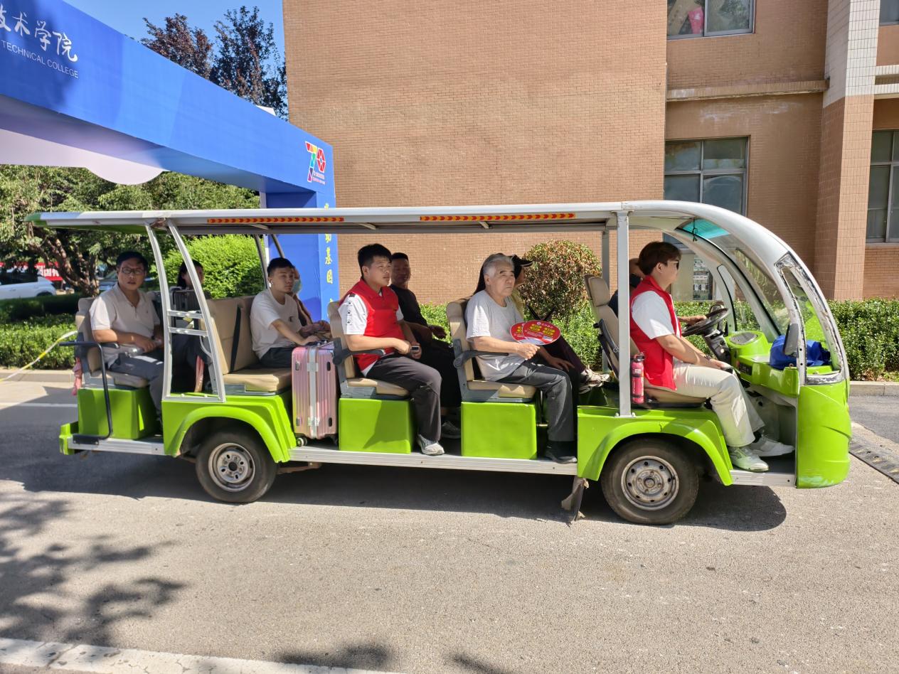 明德物业的工作人员在现场设置了服务驿站,为家长提供消暑饮品以及小礼品。除此之外,还派出校内接驳车,安排专人指引新同学与家长搭乘校内接驳车,直达学生公寓,顺畅衔接校门到宿舍的“最后一公里”。