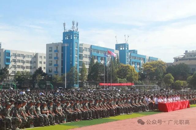 大会在庄严的国歌声中拉开帷幕。全校师生肃立致敬,昂扬的精神面貌展现了广元职高人浓厚的家国情怀与崭新的奋斗姿态。