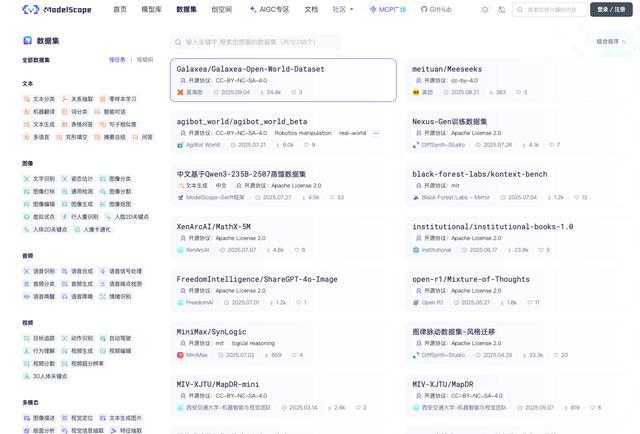 项目在魔搭社区上线后一周以内,迅速登顶数据集推荐榜单之一,一周内累计下载量超 2 万次,断层领先其他同类项目在魔搭社区的下载量;在 AI 模型与数据集共享平台 Hugging Face 上,该项目累计下载量超5万次。