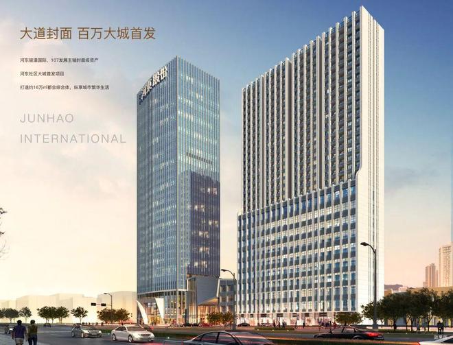 河东社区首发项目——河东骏濠国际,位于河东社区北区,总建面约16万㎡,汇聚商务公寓、办公、商业等于一体,多重复合业态共融,打造107国道封面都会综合体。