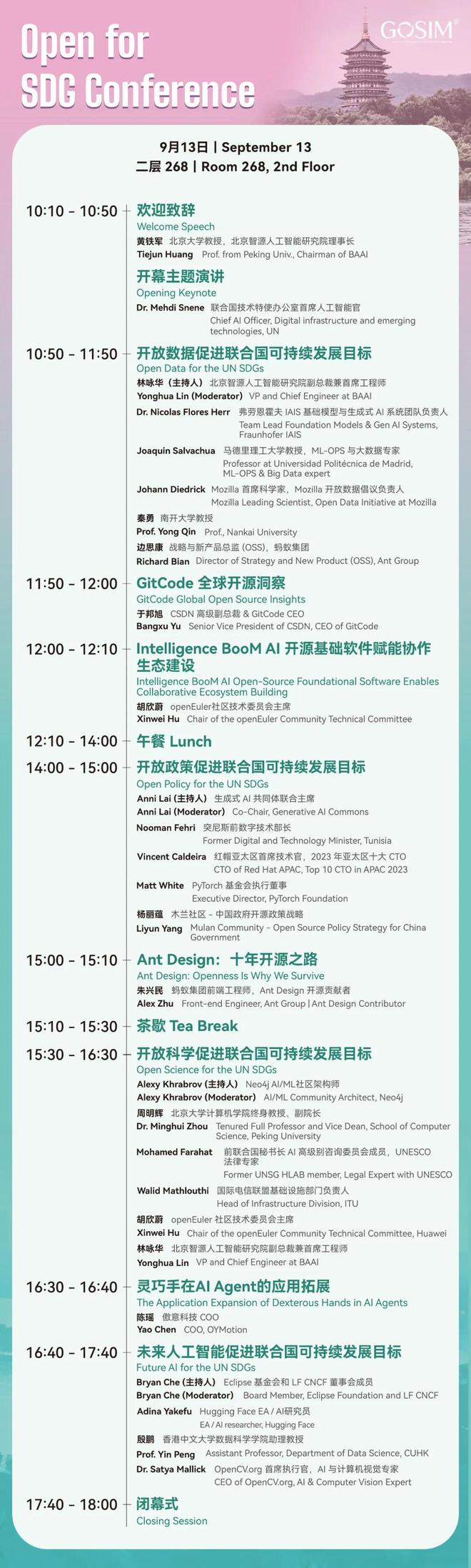 Open for SDG Conference由联合国、GOSIM、智源联合主办,这不只是一场知识的盛宴,更是一次全球性的行动号召,为构建一个更包容、公平和可持续的未来奠定坚实基础,将成为连接全球开源社区、技术创新者与可持续发展实践者的关键桥梁。