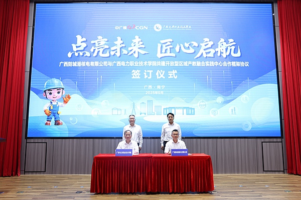 当天,学校与广西防城港核电有限公司还签署了共建开放型区域产教融合实践中心合作框架协议。根据协议,双方将以实践中心建设为契机,共同打造核电检修产业工人标准化培养体系,完善双方核电检修基础技能及行为规范实训能力建设,同时开展党支部联建、核电维修领域技术攻关等多维度的合作。(麻克栋、李燕彬、杨艳)