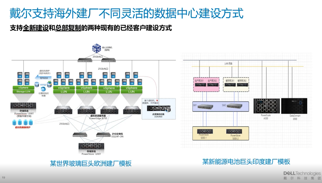当前,企业出海IT建设主要呈现两类路径:一类企业借海外拓展契机,将分散的MES、CRM等系统进行标准化重构,采用轻量化架构新建海外数据中心;另一类企业则直接复制国内已验证的完整架构,实现海外工厂的快速部署。针对不同的数据中心建设模式,戴尔科技提供成熟的出海一体化数据中心建设方案与实施案例参考。
