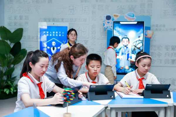AI通识+虚拟名人:人工智能通识教育平台“教学平台+课程资源+教学硬件”一站式配齐,提升师生AI理解力、应用力;奇思妙问好奇窗搭载爱因斯坦、李白等10余位虚拟名人数字人,结合深度语义理解技术打造沉浸式科普互动,激发学生主动探索兴趣。