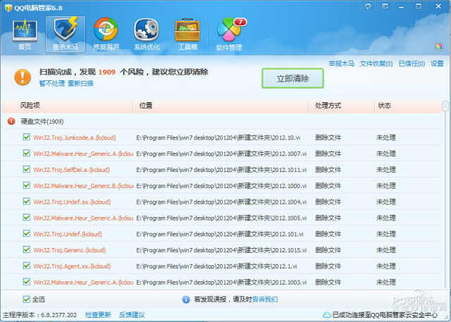 个人收集并不具有广泛性,所以此测试仅供参考。笔者采取了计算扫描后剩余文件数量的 *** ,来确定最终成绩。所以对病毒的处理方式均选择删除或隔离方式。