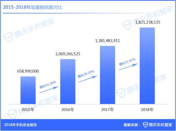 《2018年手机安全报告》:腾讯手机管家用户举报垃圾短信多达1821亿条