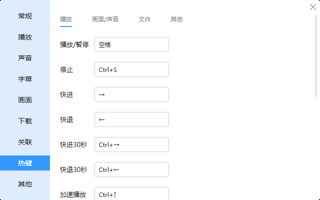 按F2或者右键-设置打开迅雷影音的系统设置面板。选择“热键”更改播放器的设置。迅雷影音常用的热键设置都在这里,可以根据自己的喜好设置。