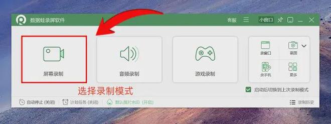 步骤1:首先,在电脑上打开数据蛙录屏软件。进入软件主界面后,可以看到多种适配不同场景的录制模式,其中包括针对游戏场景优化的“游戏录制”、用于捕捉日常电脑屏幕内容的“屏幕录制”等。本次操作将以应用范围较广的“屏幕录制”模式为例。