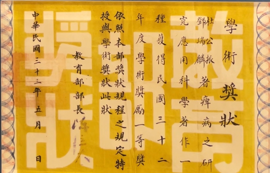 同济大学医学院教授唐哲、杜公振和助教邓瑞麟攻克“麻脚瘟”,获1943年国民 *** 教育部学术奖励一等奖。供图 同济大学档案馆