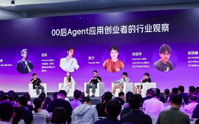 Pokee AI朱哲清也坦言,尽管智能体在特定场景(如编程、数学)中表现优异,但其推理成本高、扩展性差的问题限制了大规模商用。尤其在高并发环境中,如何保持系统稳定与响应速度,仍是对技术团队的极大考验。在“00后Agent应用创业者行业观察”的圆桌讨论中,多位年轻的创业者分享了他们对行业现状的观察。圆桌由特工宇宙/观猹创始人仲泰主持,FinGenius创始人花妖、Flowith CMO拐子、SophiaPro联创向劲宇、以及特工宇宙首席科学家刘鸿樟共同分享了新生代创业者们对智能体发展的独到视角。