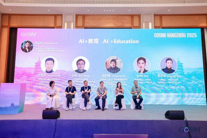 紧接着,在「AI+教育」圆桌对话中,由Sustentra 联合创始人兼 CEO、2025 耶鲁企业家精神奖学金封面人物Vivian Cai主持,教育专家、腾讯教育顾问严玉庆,华东师范大学教授、奇点智能研究院开源技术委员会主任王伟,中山大学深圳附属学校副校长刘月刚,AskSia 联合创始人Bella ren,AI 师傅创始人、CEO孙志岗共同探讨了 AI 在教育场景中的双重角色:它既可能成为学生的“认知伙伴”,也可能演变为“算法监督者”。在这种张力下,教育公平、个人隐私以及教师角色的转型,正在面临新的变革。