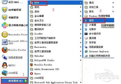 步骤2、然后按下Print键,点击开始,然后找到所有程序,点击附件,然后点击画图,然后CTRL+V一下(前提是你确保自己按下了Print键,否则可能什么也不会有),神奇的事情是不是出现了,刚才截图的画面出现在了画图板上。