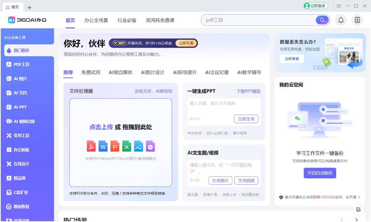 4.AI办公提供一站式国内领先大模型体验高效智能体验,推出一键式AI办公,包含AI图片、AI视频、AI文档、AI PPT、办公工具、模版大全等功能,提升办公效率。